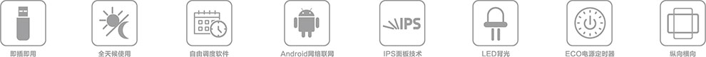 超薄機身;質(zhì)感拉絲金屬;高清畫(huà)質(zhì);觸摸極速反應;智能分屏;智能遠程信息發(fā)布;可定時(shí)開(kāi)關(guān)機;提前設定節目源;鋼化玻璃屏幕;可定制專(zhuān)屬LOGO、多種顏色、尺寸可選。